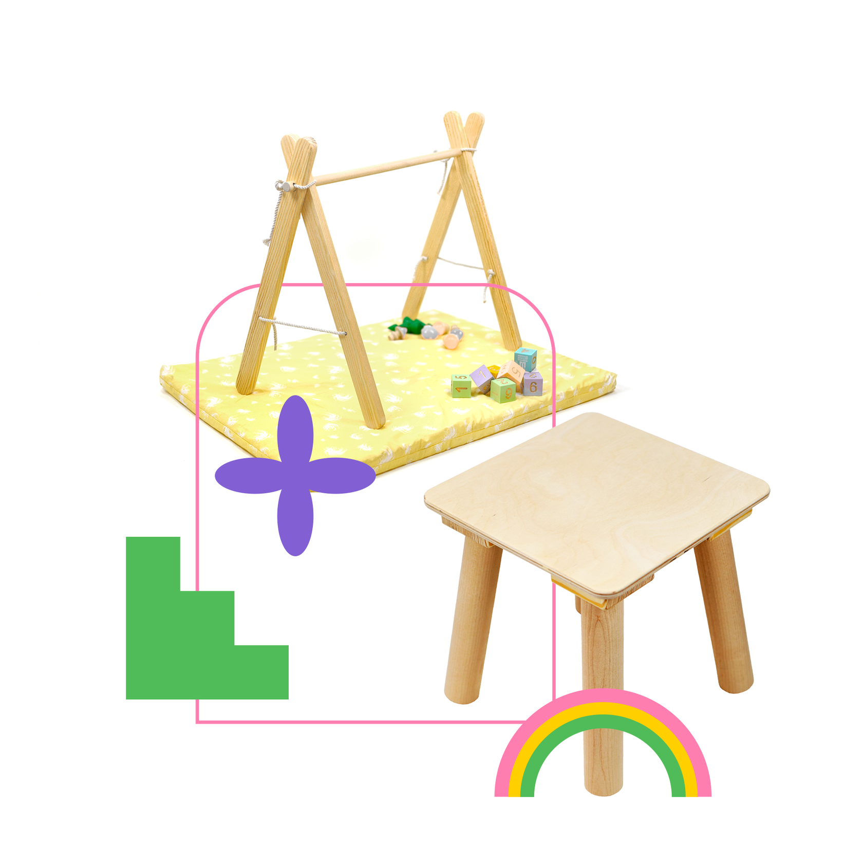 Деревянные детские стулья, табуреты, полки и тренажеры Монтессори.